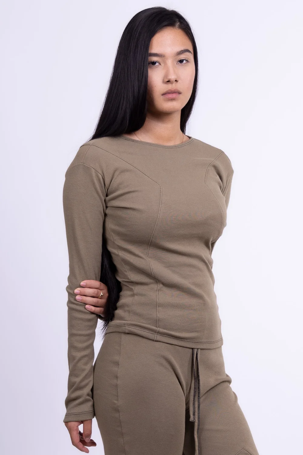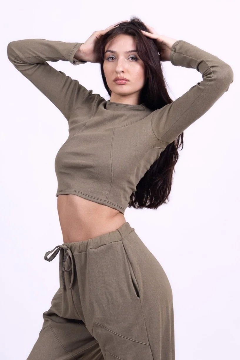 Olive Organic Cotton Long Sleeve Cropped Shirt