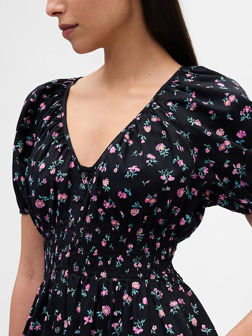 Puff-Sleeve Midi Dress